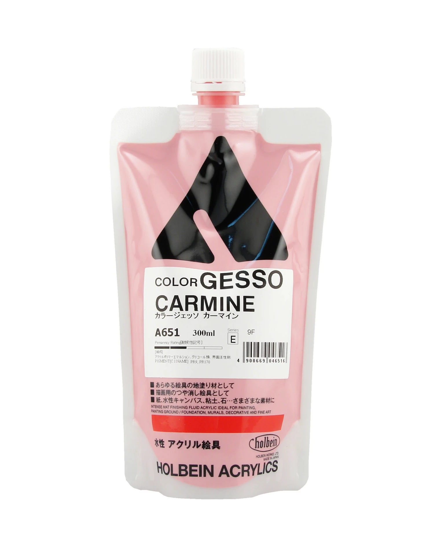 Holbein Gesso allows you to combine two important preparation steps into one. Save time by applying your gesso and your base color at the same time. Holbein gesso is thick, creamy and opaque, and dries to an ultra-matte finish. The gesso adheres well to most surfaces, including paper, cloth, canvas, wood, stone, and primed metal. Once dry, overpaint it with acrylics, oils, or pastels.