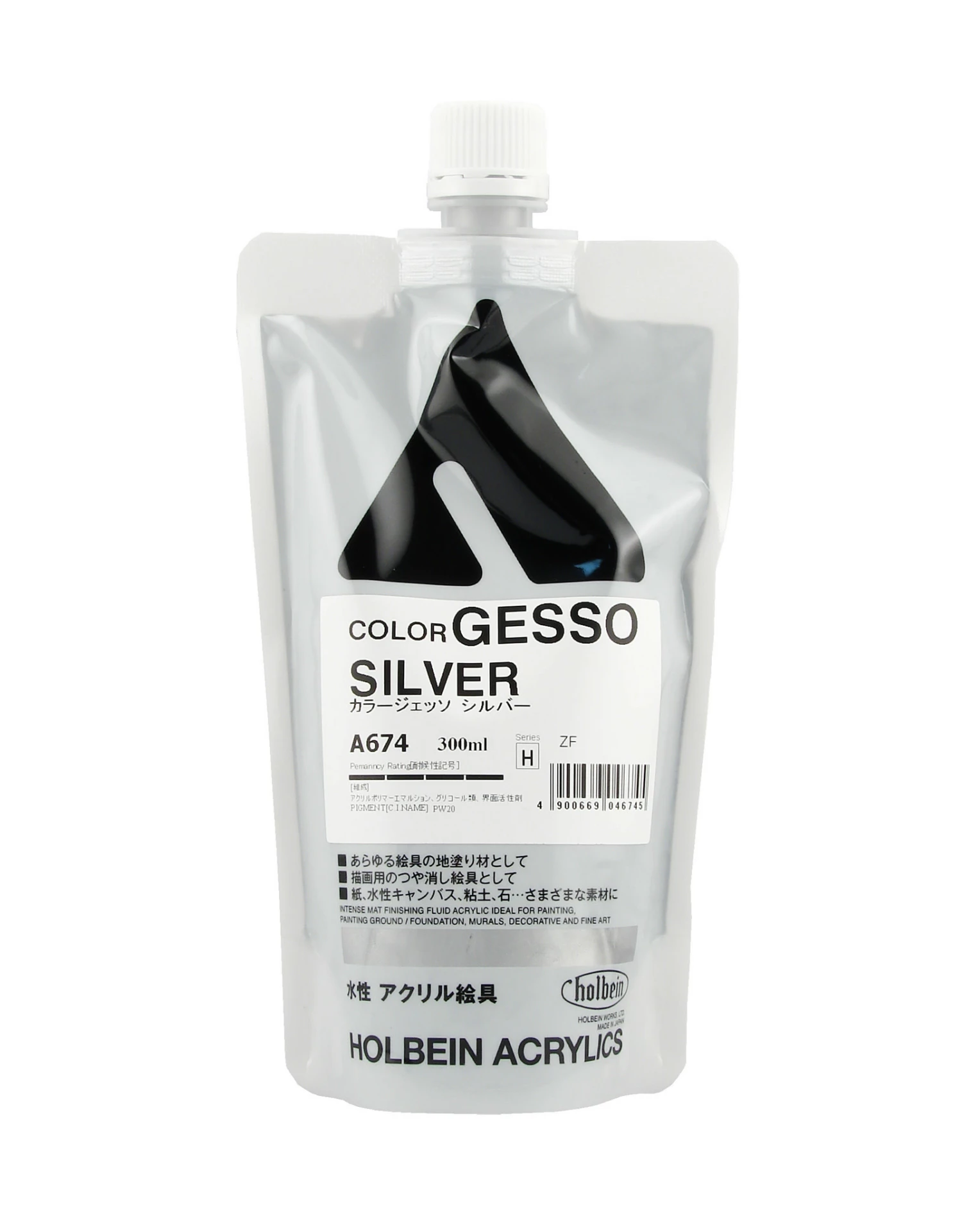 Holbein Gesso allows you to combine two important preparation steps into one. Save time by applying your gesso and your base color at the same time. Holbein gesso is thick, creamy and opaque, and dries to an ultra-matte finish. The gesso adheres well to most surfaces, including paper, cloth, canvas, wood, stone, and primed metal. Once dry, overpaint it with acrylics, oils, or pastels.