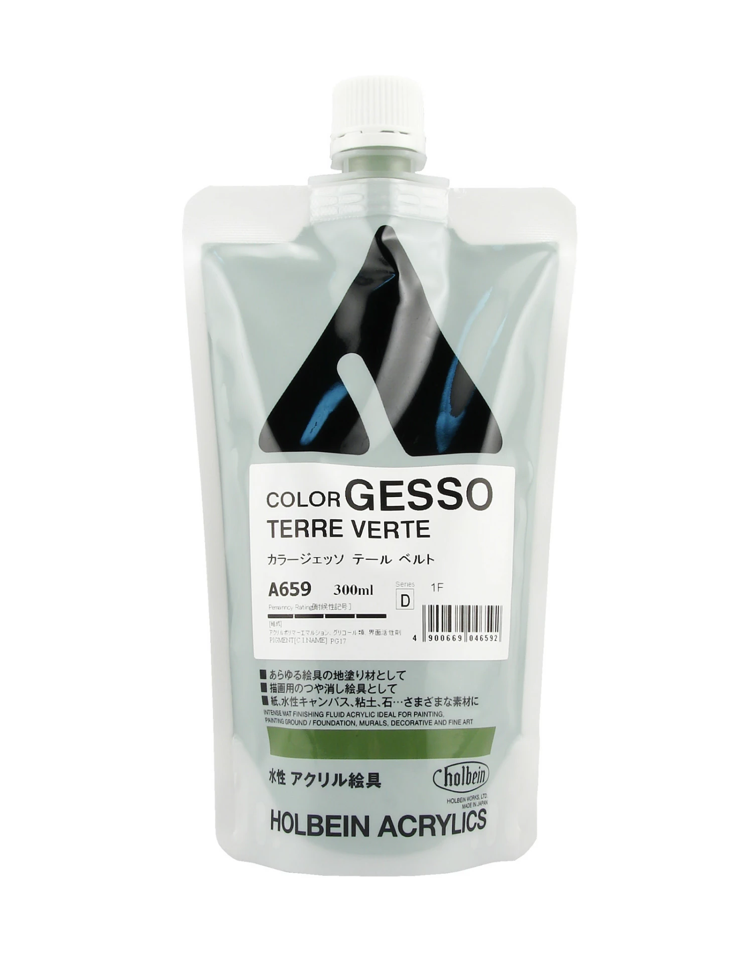 Holbein Gesso allows you to combine two important preparation steps into one. Save time by applying your gesso and your base color at the same time. Holbein gesso is thick, creamy and opaque, and dries to an ultra-matte finish. The gesso adheres well to most surfaces, including paper, cloth, canvas, wood, stone, and primed metal. Once dry, overpaint it with acrylics, oils, or pastels.