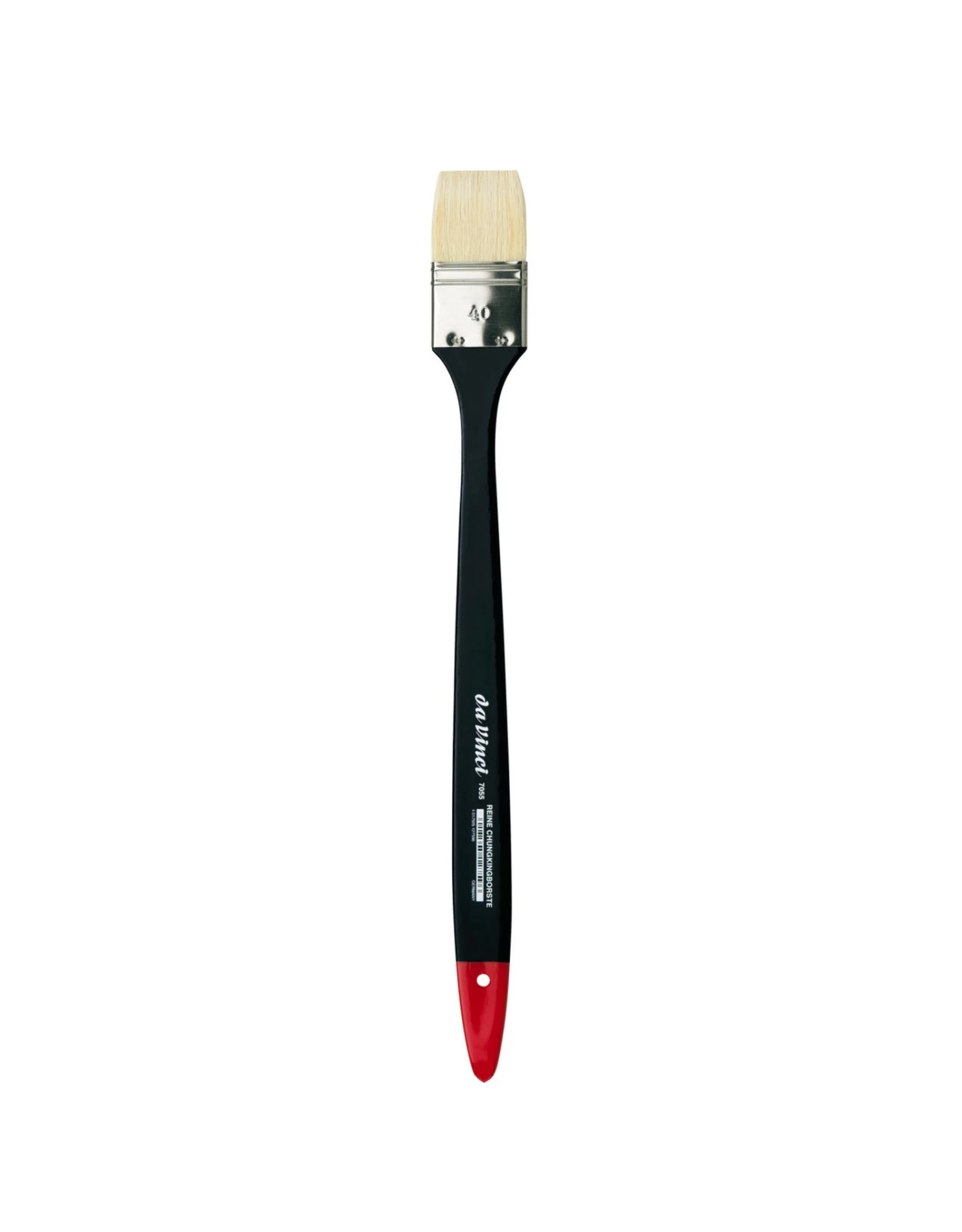 Da Vinci Maestro 2 brushes are made with hand-shaped genuine, extra-strong, double-boiled Chungking Bristles with excellent spring and color-carrying ability. A tapered flat brush head is attached to a long, black and red lacquered handle and paired with a durable, seamless, nickel-plated brass ferrule. Â