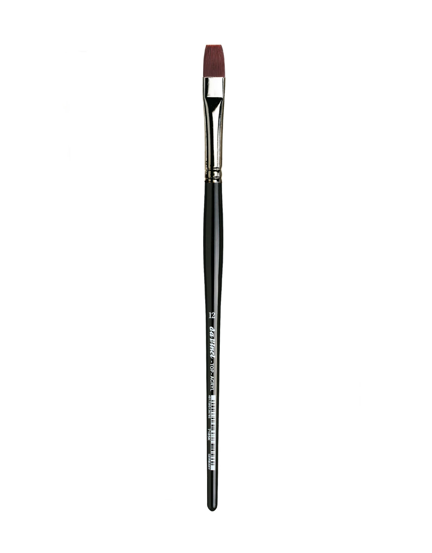 DaVinci’s Top-Acryl brushes are made using red-brown, durable synthetic fibers that are perfect for oil and acrylic paints. The secure ferrule holds your bristles tightly to ensure little to no fall out while working. The transparent anthracite handles have a flattened handle to prevent the brush from rolling away and to keep your hand from getting tired after hours of painting.