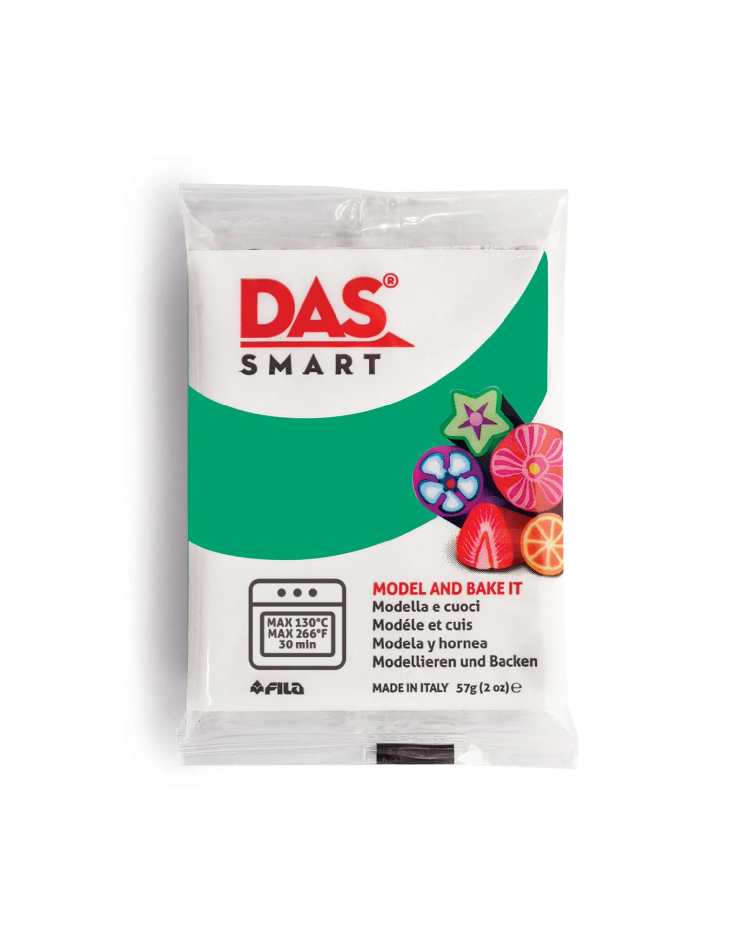 DAS Smart Clay is a brightly colored, non-toxic polymer clay that easily molds to your will. This pre-colored clay exhibits no color change from wet to dry, eliminating the need for painting your projects. Once your project is formed, simply place the clay in a 266Β°F(130Β°C) oven for 30 minutes to bake and harden. Do not exceed 30 minutes of baking at a time. This clay can be re-baked if additional details are added.
