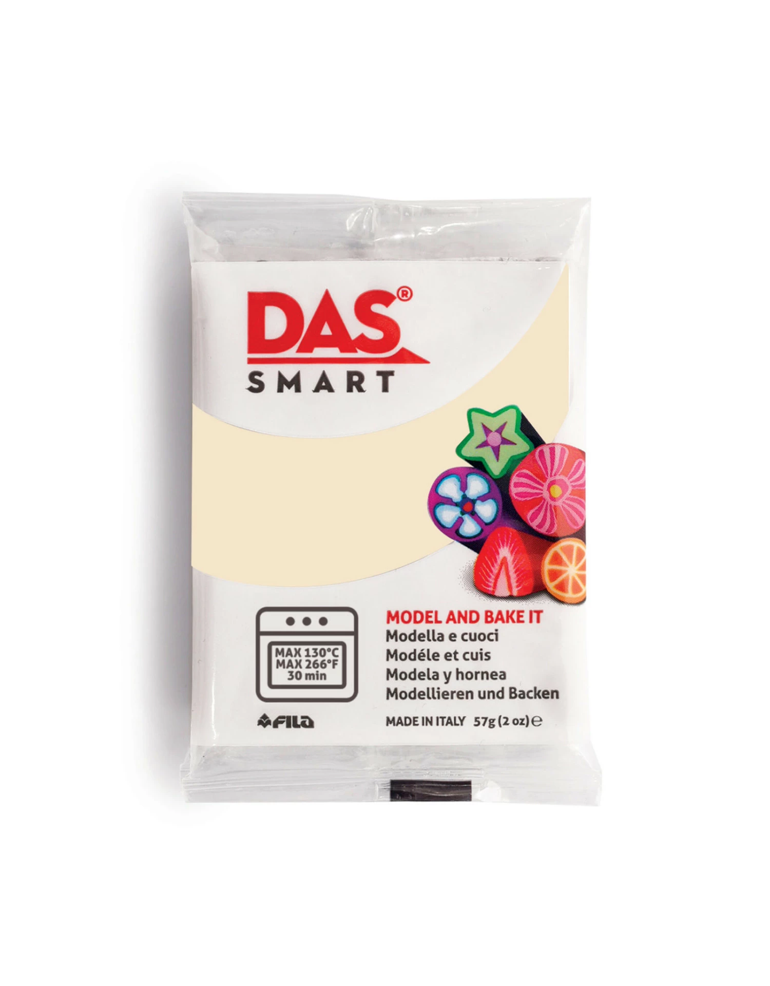 DAS Smart Clay is a brightly colored, non-toxic polymer clay that easily molds to your will. This pre-colored clay exhibits no color change from wet to dry, eliminating the need for painting your projects. Once your project is formed, simply place the clay in a 266°F (130°C) oven for 30 minutes to bake and harden. Do not exceed 30 minutes of baking at a time. This clay can be re-baked if additional details are added.