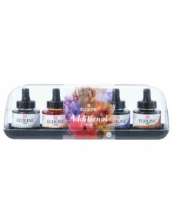 The Ecoline liquid watercolors from Royal Talens are highly pigmented, artist grade liquid watercolors that are astonishingly brilliant and vivid. Made with a pure formula based on dyes and gum arabic, these watercolors can be used for watercolor painting, calligraphy with fountain or dip pens, illustrations and more. Their classic round bottle includes a small glass dropper to achieve blooming effects or control when color mixing.