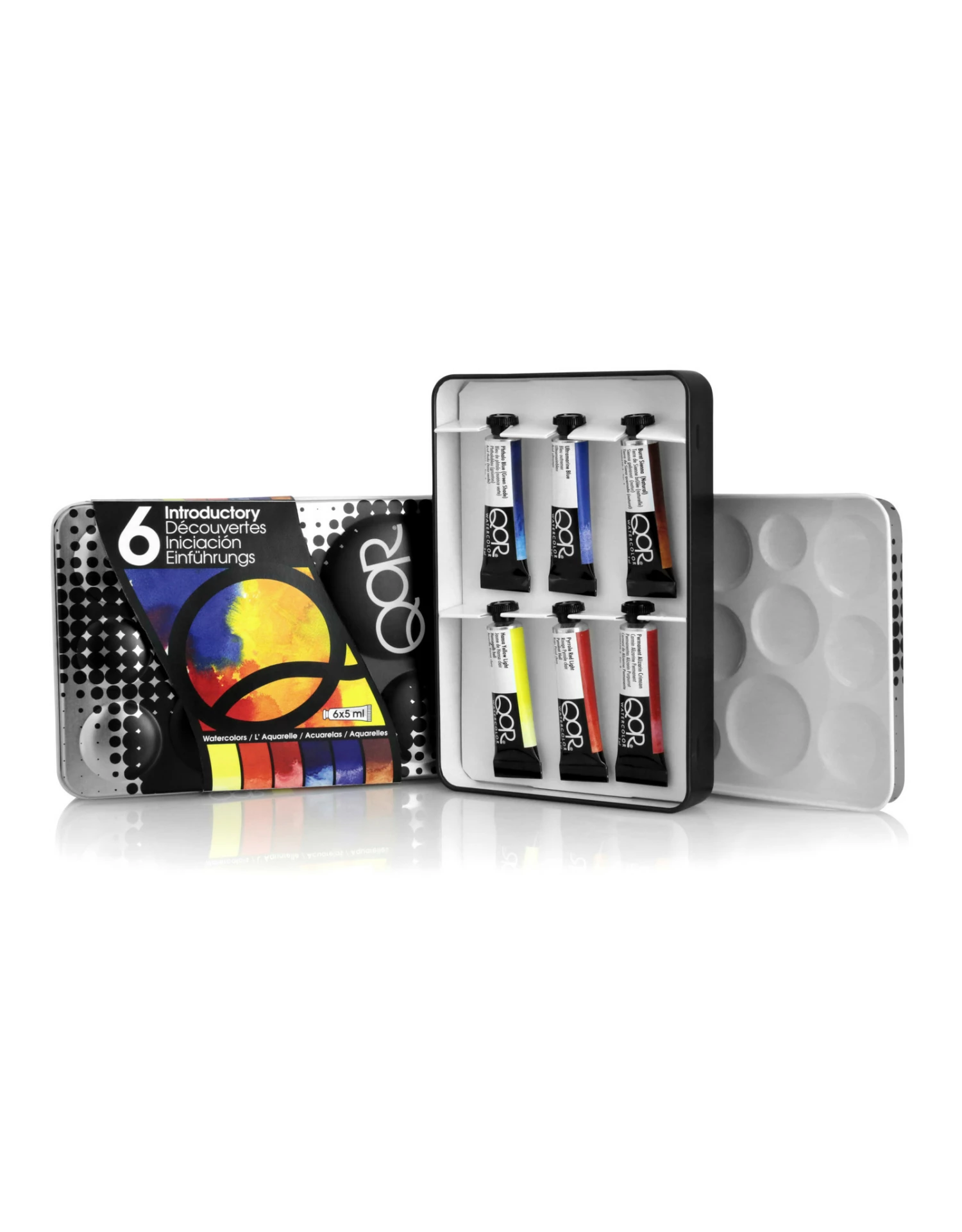 - Set is offered in a metal case including 6 tubes and removable lid with built-in mixing wells