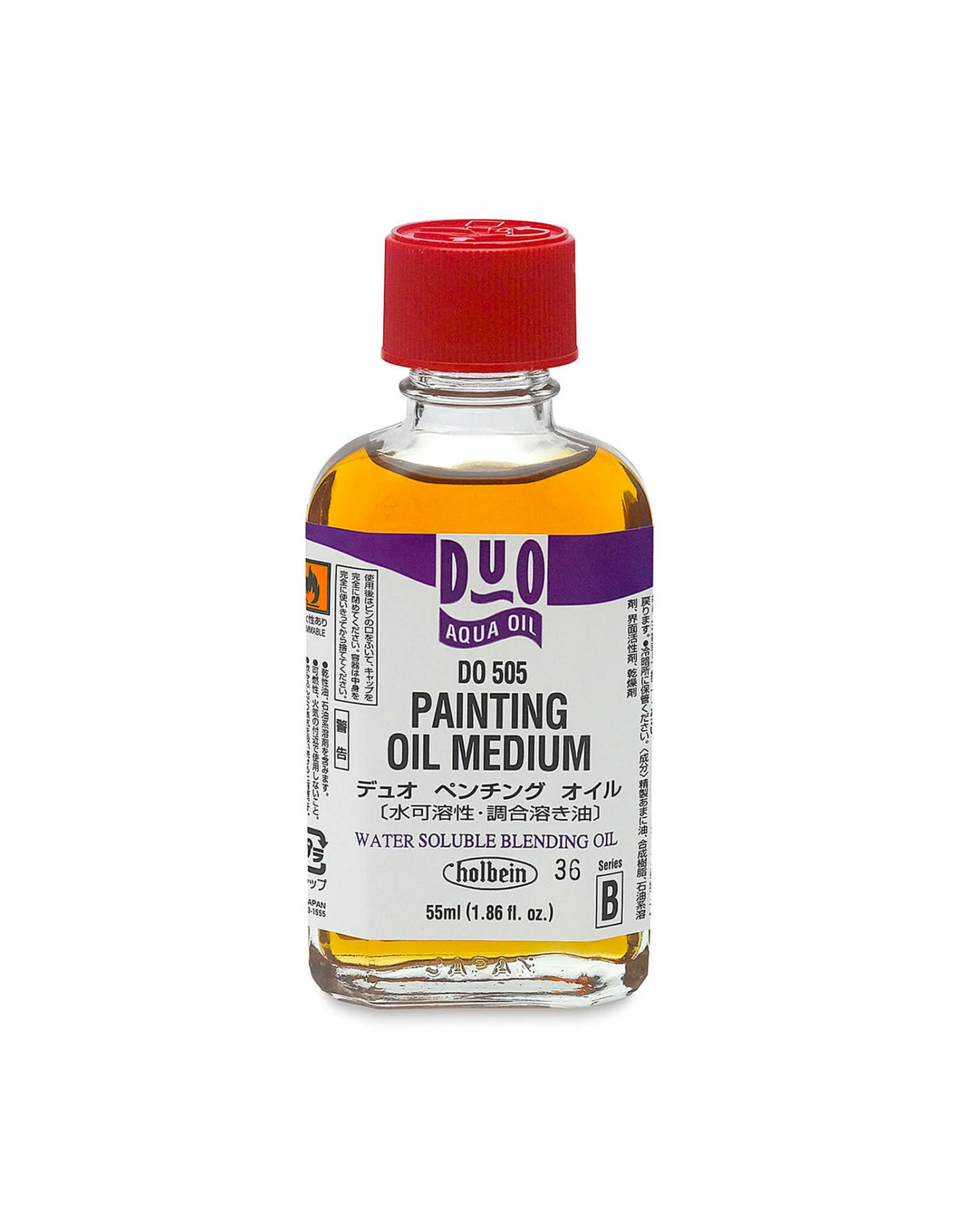 Holbein painting oil medium enhances transparency and gloss finish while accelerating drying time of oil colors. Great for adding small details, use this medium during the final layers of your painting for a stronger surface finish. This medium can be used undiluted or diluted with water to achieve the desired finish.