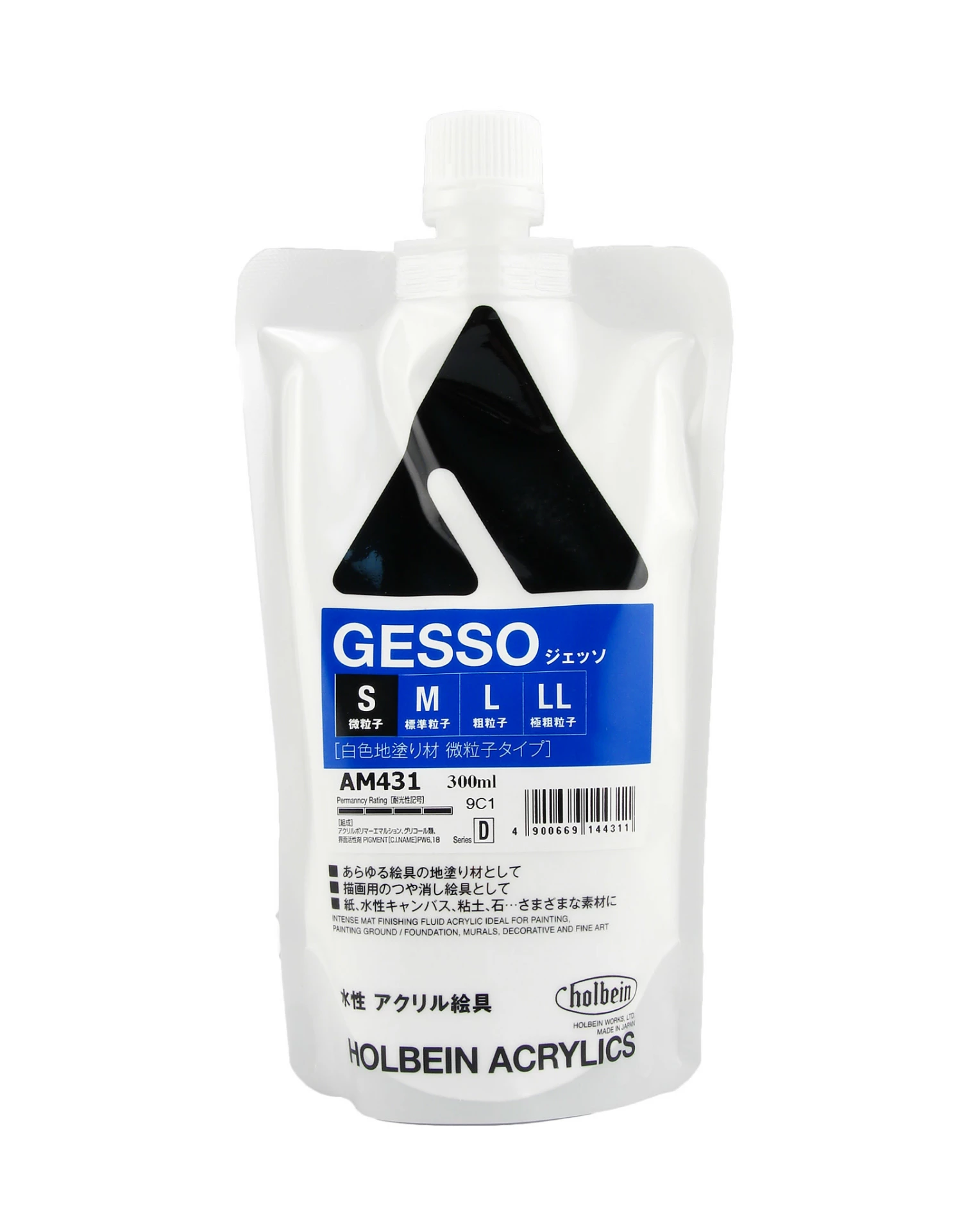 Holbein Gesso allows you to combine two important preparation steps into one. Save time by applying your gesso and your base color at the same time. Holbein gesso is thick, creamy and opaque, and dries to an ultra-matte finish. The gesso adheres well to most surfaces, including paper, cloth, canvas, wood, stone, and primed metal. Once dry, overpaint it with acrylics, oils, or pastels.