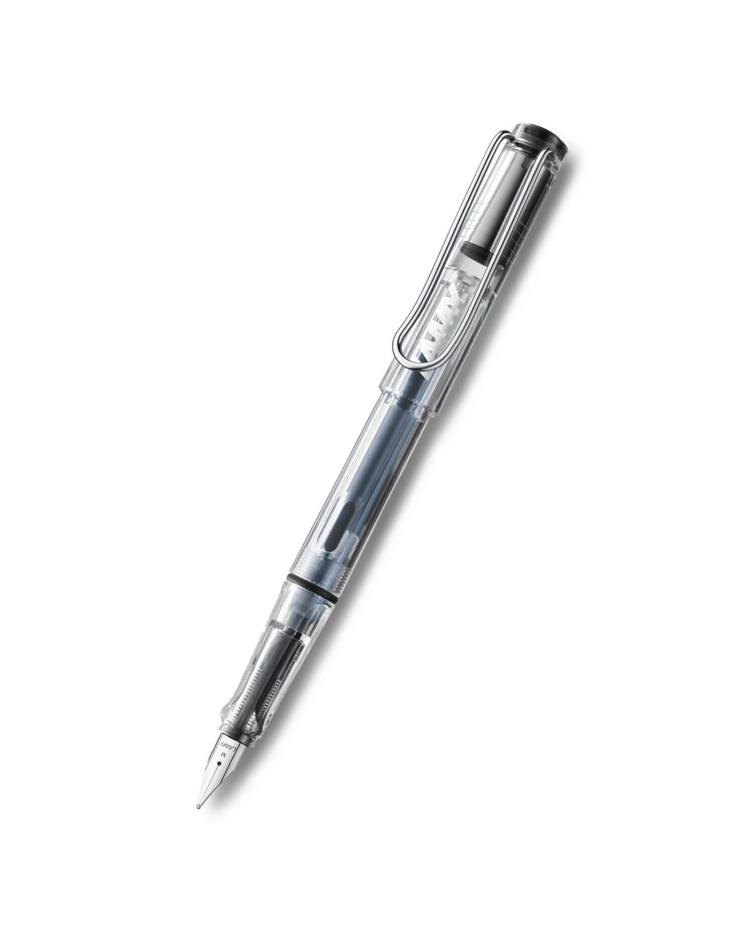 LAMY Vista fountain pens have a unique, transparent barrel to allow you an inside look at the mechanics of your pen. The transparent plastic won’t fade or discolor over time and includes an ergonomic grip. The metal clip is durable and sleek, adding to the visual interest of this one-of-a-kind pen.