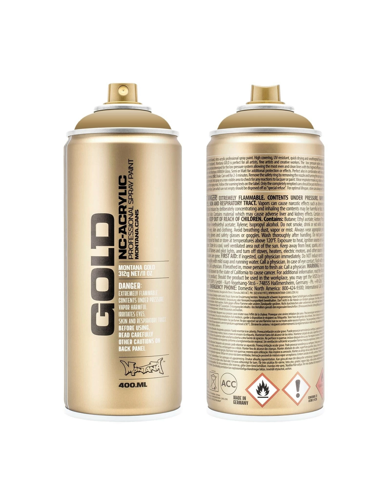 Montana GOLD is a low-odor, high-quality, acrylic-based spray paint that provides full coverage and a satin finish. Suited for use on a variety of surfaces such as canvas, wood, concrete, metal, glass or even flexible surfaces, it won’t crack or bleach even when used in layers. Featuring a level cap system, you can achieve low- and high-pressure performance in the same can; low-pressure output is ideal for working in thin lines and fine detail while high-pressure output for easily filling in larger areas. Shake well before use.