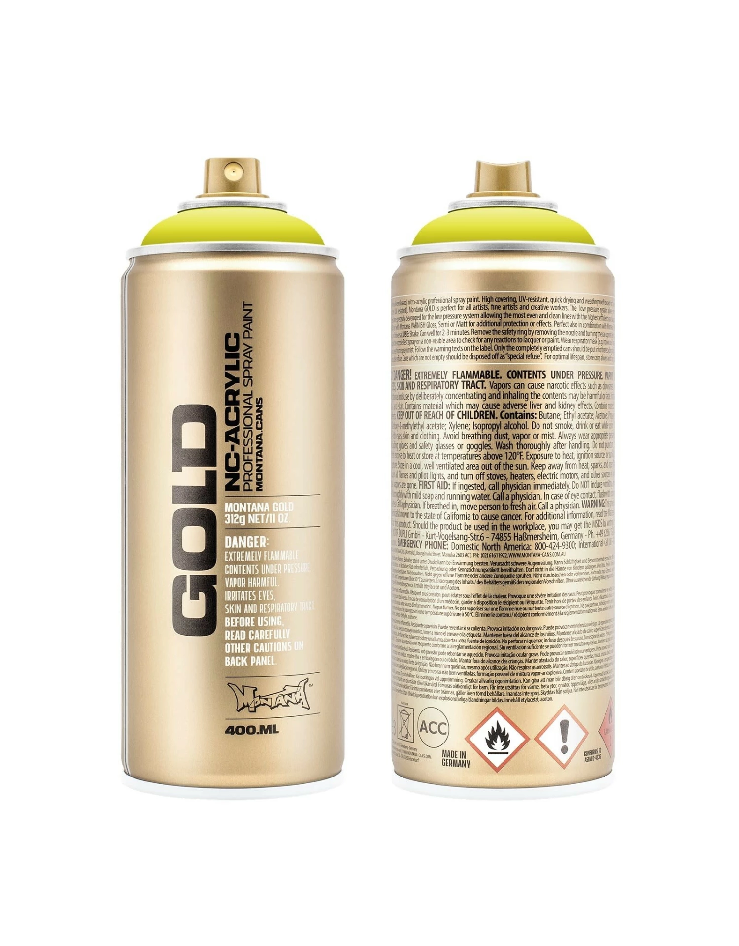 Montana GOLD is a low-odor, high-quality, acrylic-based spray paint that provides full coverage and a satin finish. Suited for use on a variety of surfaces such as canvas, wood, concrete, metal, glass or even flexible surfaces, it won’t crack or bleach even when used in layers. Featuring a level cap system, you can achieve low- and high-pressure performance in the same can; low-pressure output is ideal for working in thin lines and fine detail while high-pressure output for easily filling in larger areas. Shake well before use.