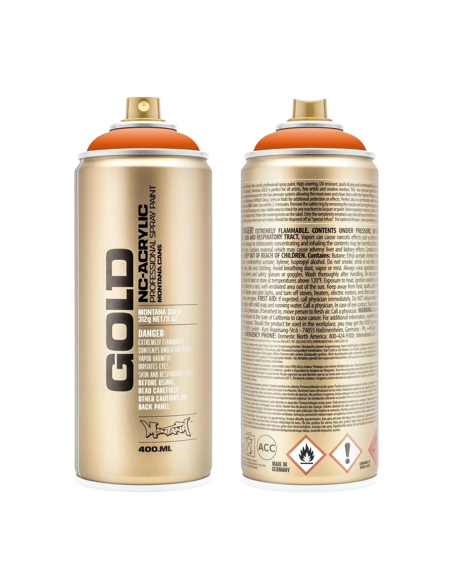 Montana GOLD is a low-odor, high-quality, acrylic-based spray paint that provides full coverage and a satin finish. Suited for use on a variety of surfaces such as canvas, wood, concrete, metal, glass or even flexible surfaces, it won’t crack or bleach even when used in layers. Featuring a level cap system, you can achieve low- and high-pressure performance in the same can; low-pressure output is ideal for working in thin lines and fine detail while high-pressure output for easily filling in larger areas. Shake well before use.