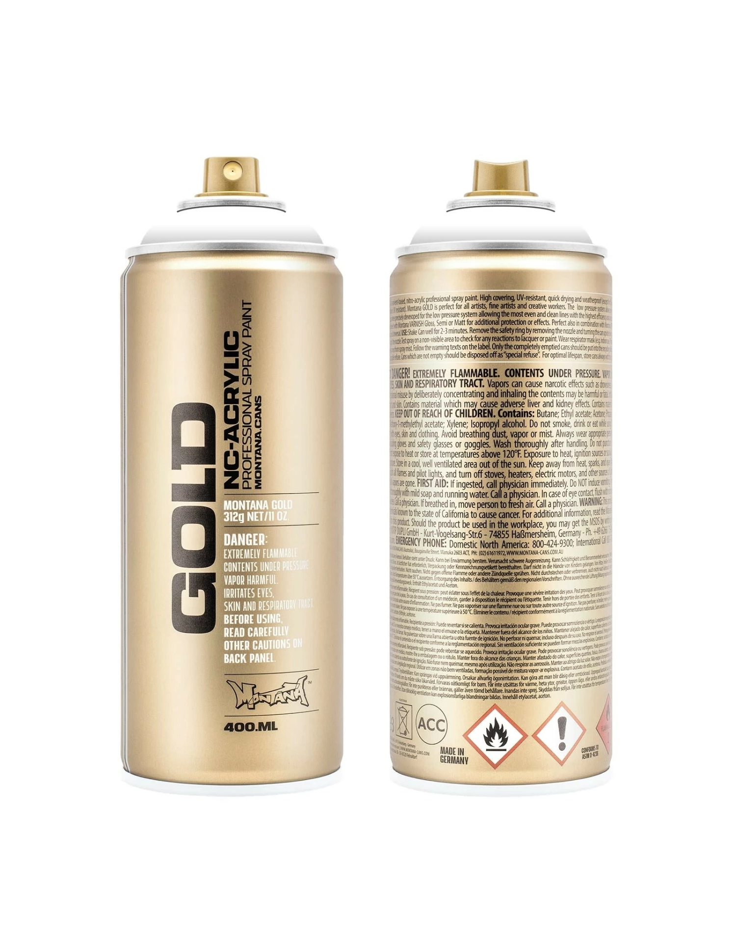 Montana GOLD is a low-odor, high-quality, acrylic-based spray paint that provides full coverage and a satin finish. Suited for use on a variety of surfaces such as canvas, wood, concrete, metal, glass or even flexible surfaces, it won’t crack or bleach even when used in layers. Featuring a level cap system, you can achieve low- and high-pressure performance in the same can; low-pressure output is ideal for working in thin lines and fine detail while high-pressure output for easily filling in larger areas. Shake well before use.