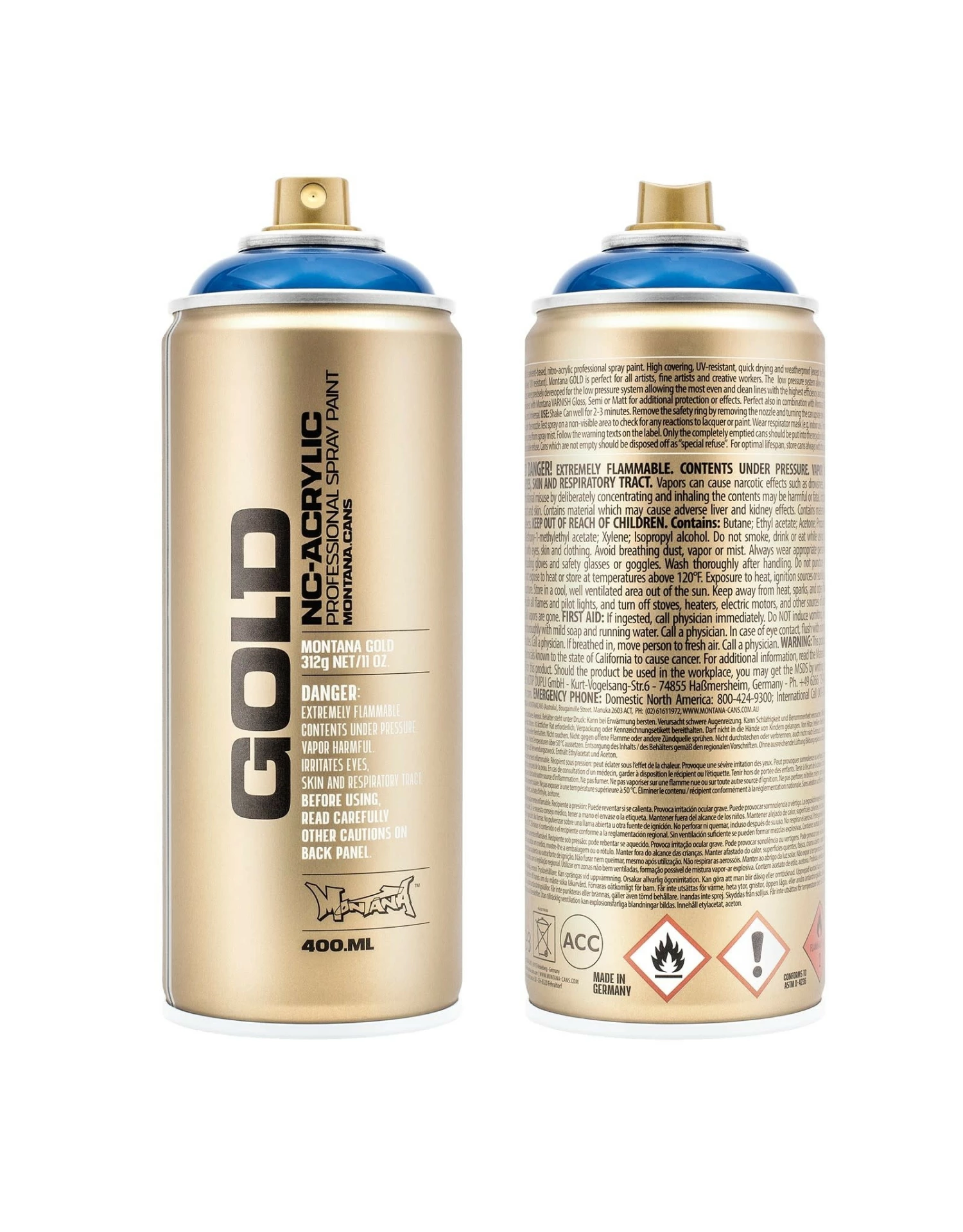 Montana GOLD is a low-odor, high-quality, acrylic-based spray paint that provides full coverage and a satin finish. Suited for use on a variety of surfaces such as canvas, wood, concrete, metal, glass or even flexible surfaces, it won’t crack or bleach even when used in layers. Featuring a level cap system, you can achieve low- and high-pressure performance in the same can; low-pressure output is ideal for working in thin lines and fine detail while high-pressure output for easily filling in larger areas. Shake well before use.