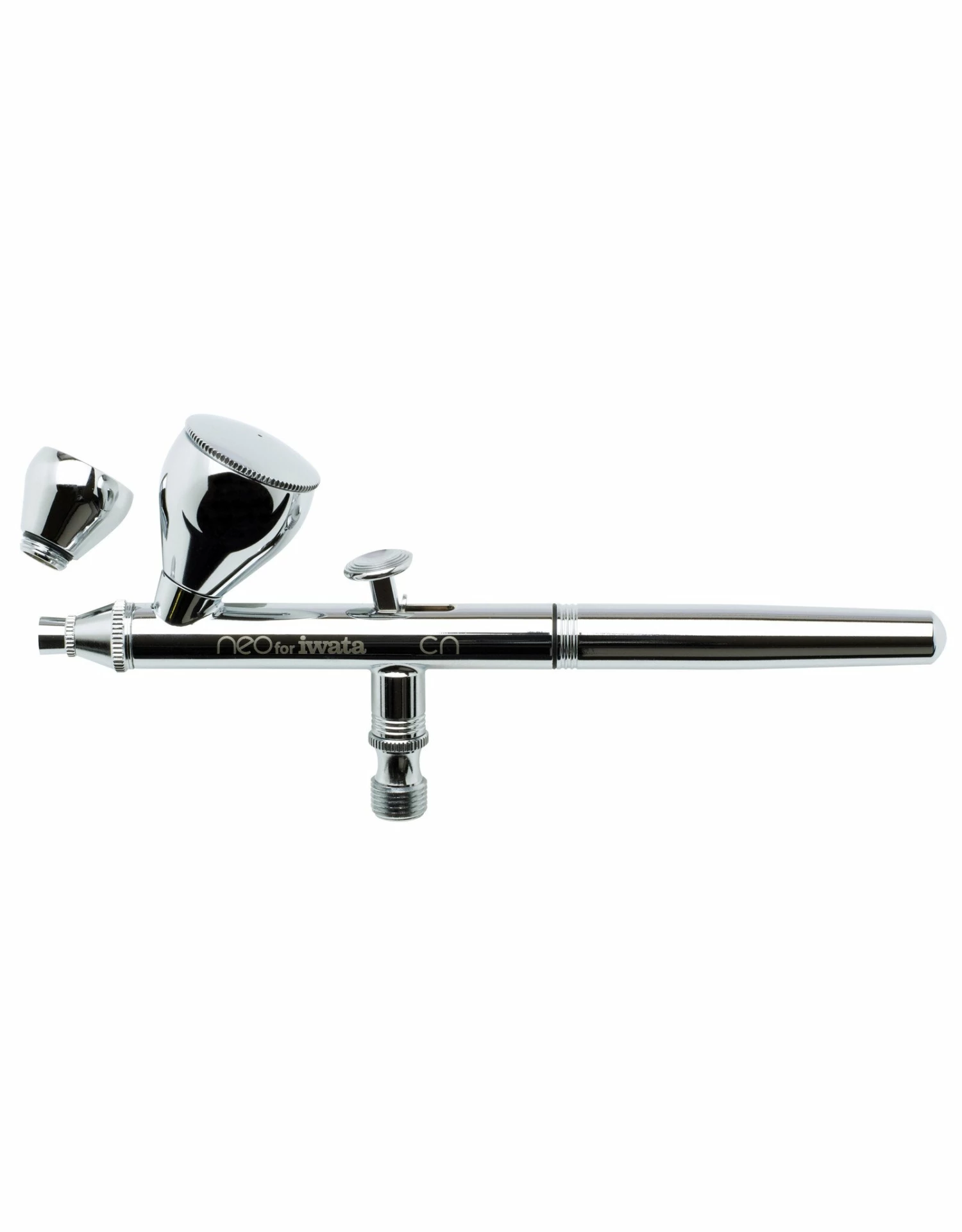 NEO CN Gravity Feed Dual Action airbrush has a detachable 0.24oz/7ml fluid cup with lid that is large enough for color mixing and an additional 0.10oz/3ml color cup that is ideal when using small amounts of spray medium. Fine atomization is achieved with the smallest air compressors, making NEO an affordable option for general purpose spraying and for anyone wanting to airbrush for the first time.Â