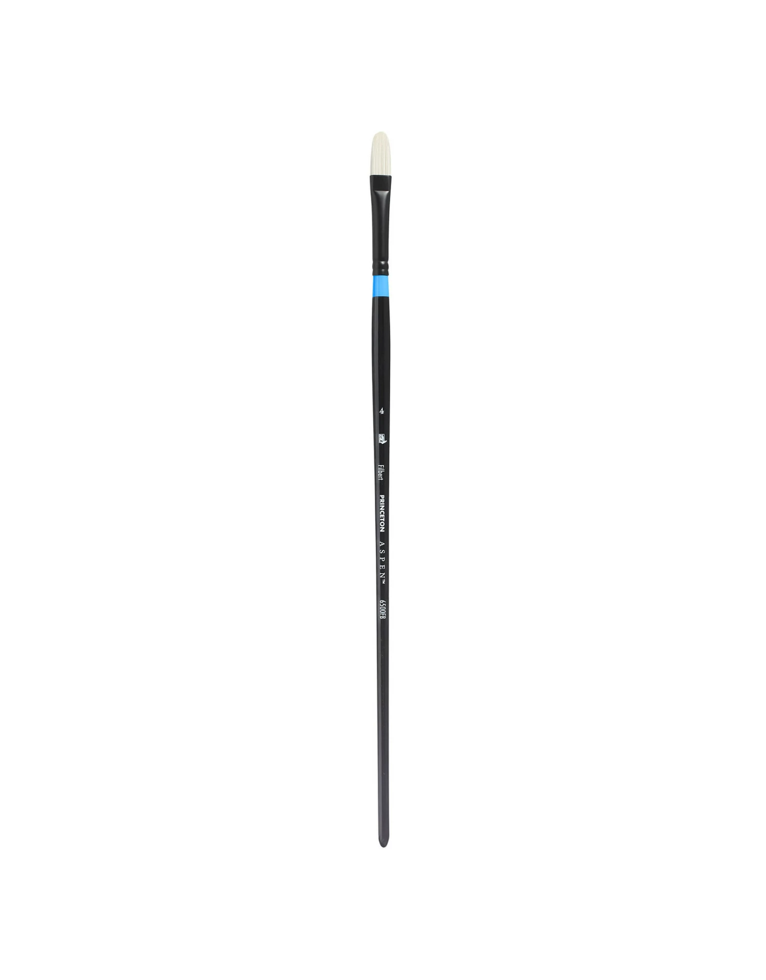 Princeton’s Aspen Series 6500 brushes combine several important benefits to oil and acrylic artists. Their synthetic bristles retain their shape for control and paint releases and glides evenly off the smooth hairs. A black lacquered wooden handle is paired with a seamless matte black ferrule.Â