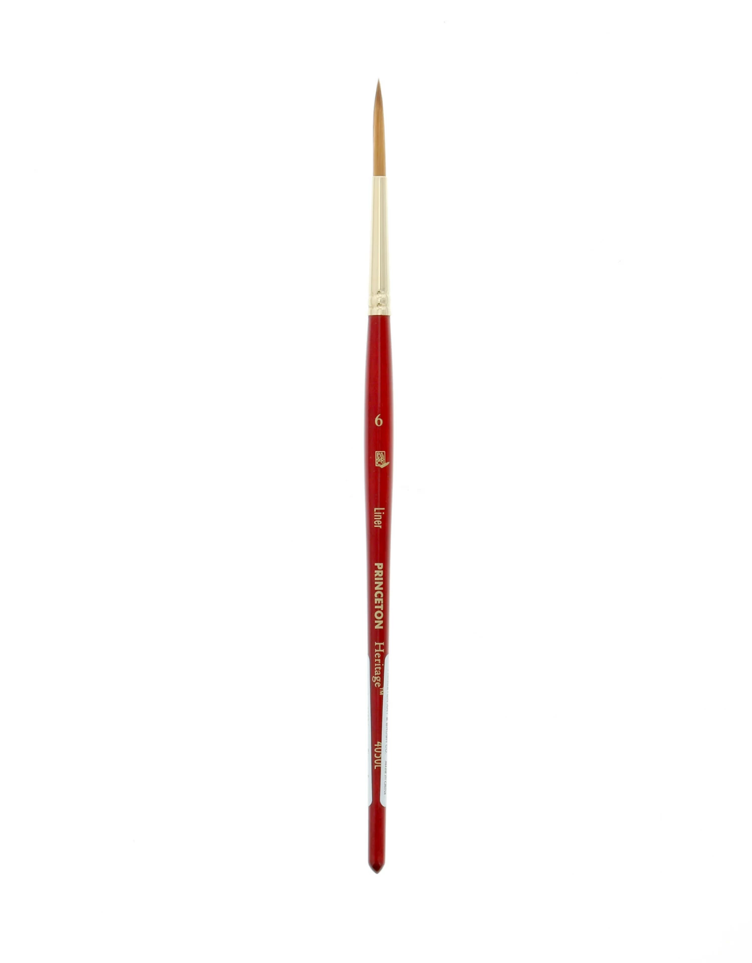 Series 4050 Heritage brushes are made with synthetic Sable fibers with a terrific point and spring. The blended fibers have an enhanced color holding capacity. A marbleized red hardwood handle is securely attached to a nickel-plated brass ferrule. Â