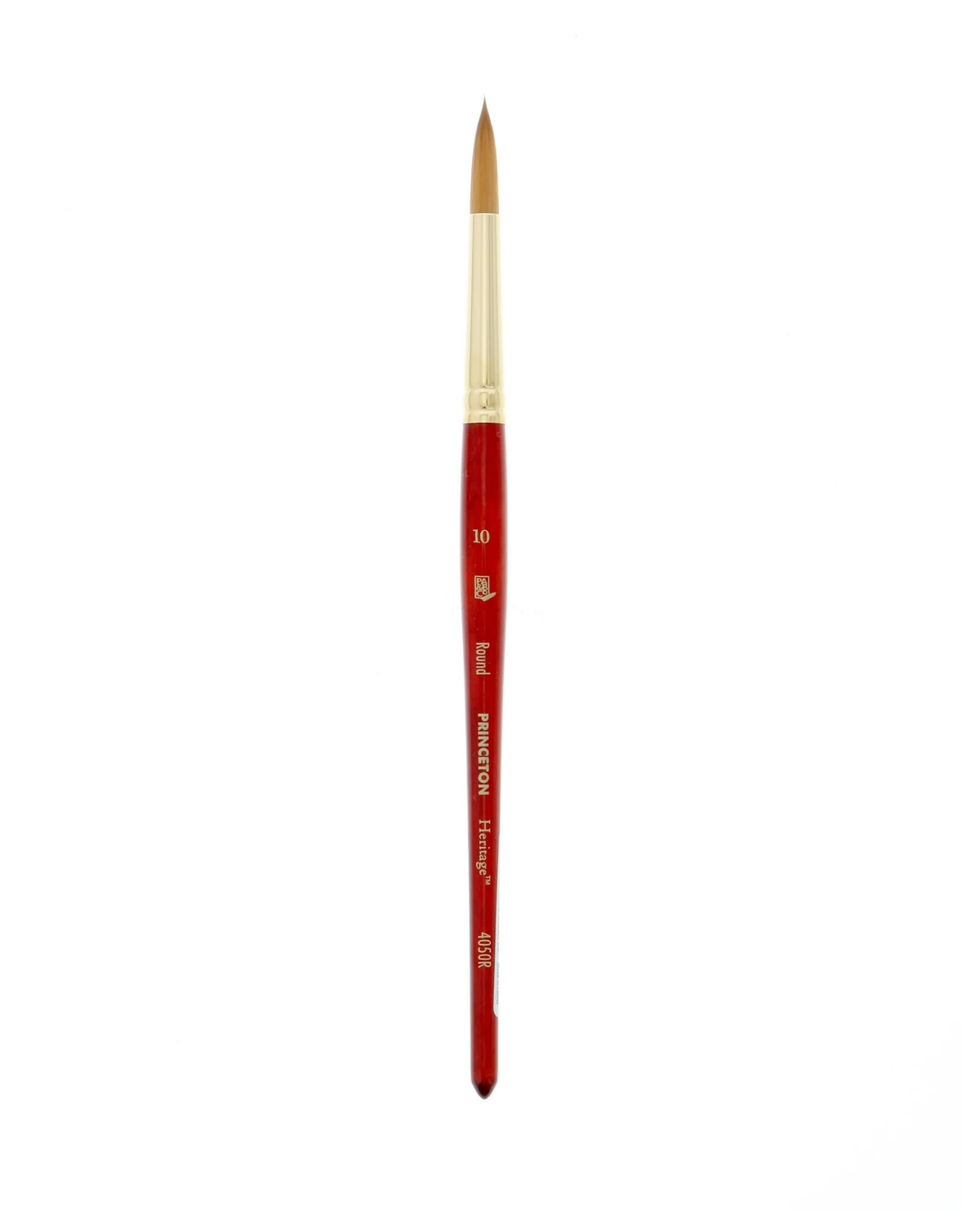 Series 4050 Heritage brushes are made with synthetic Sable fibers with a terrific point and spring. The blended fibers have an enhanced color holding capacity. A marbleized red hardwood handle is securely attached to a nickel-plated brass ferrule. Â