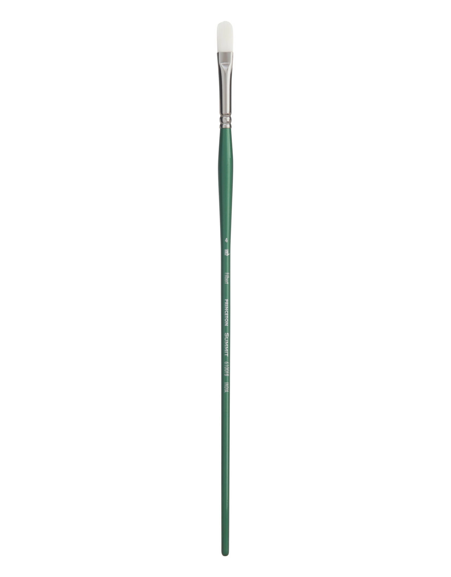 Princeton Series 6100 brushes are made with white, synthetic bristles perfect for oil and acrylic painting. The green handles are securely attached to nickel-plated brass ferrules and the bristles are excellent for low to medium viscosity paint.