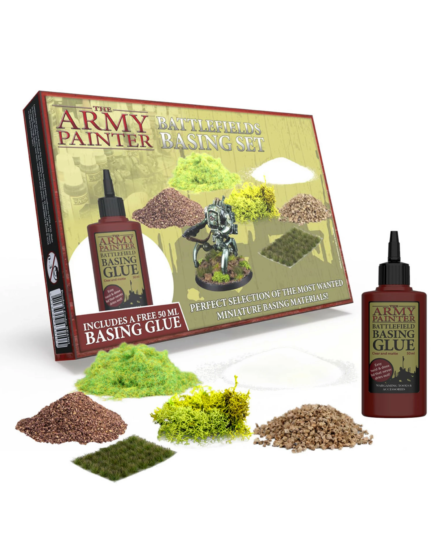 This amazing set has been designed to give the wargamer a “one box fits all” for you miniature bases. Includes all the basic basing materials you need to make any base for your miniatures. It also includes a free 50ml Battlefields Basing Glue as well as The Army Painter Technique Painting Guide.